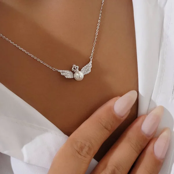 “گردنبند نقره زنانه مروارید با طرح بال فرشته” (نقره 925 عیار با آبکاری رادیوم ایتالیایی)