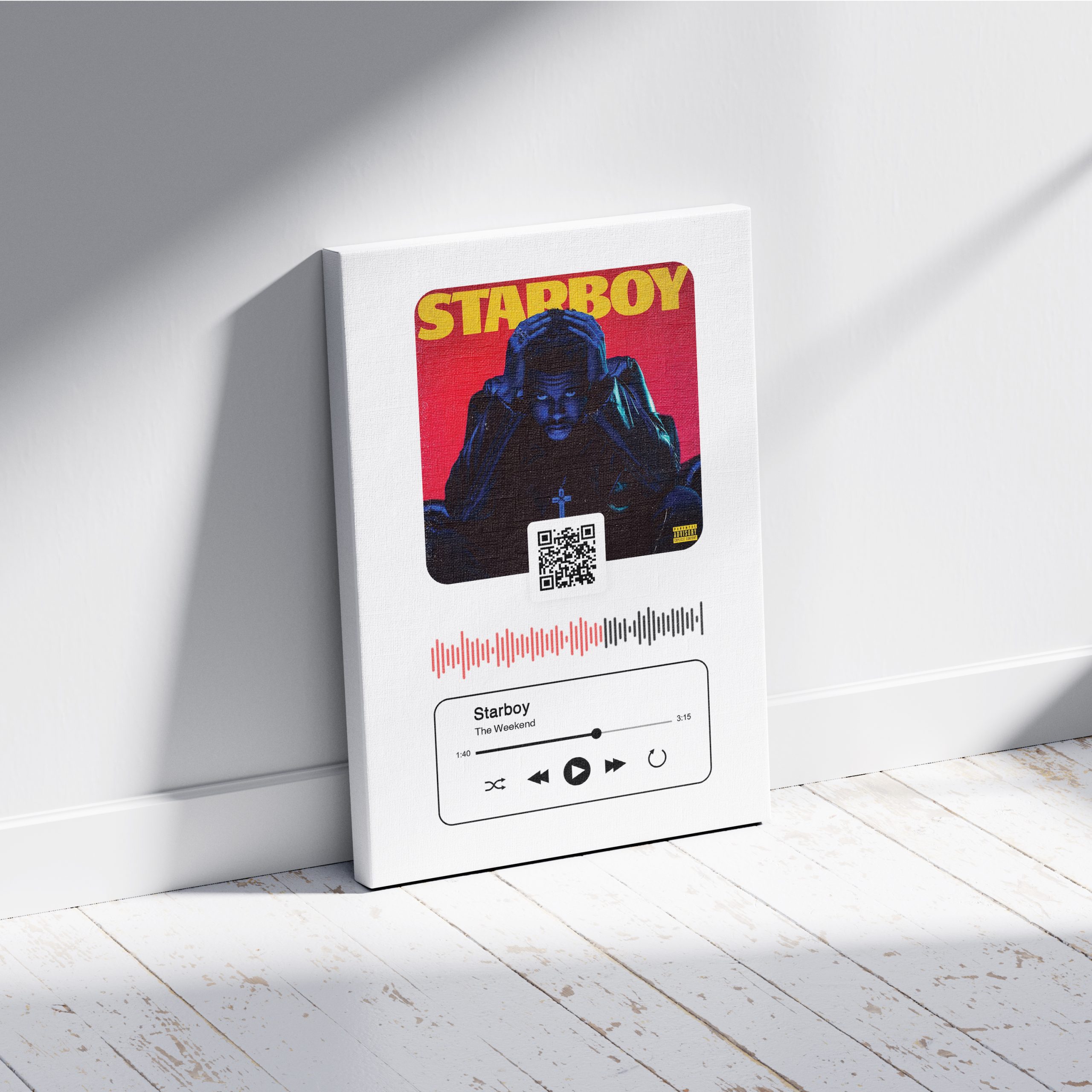 تابلو سفارشی موزیکال طرح استار بوی (Star boy) یک اثر هنری مدرن و خاص است که ترکیبی از طراحی جذاب، حرفهای و قابلیت پخش موسیقی را ارائه میدهد. این تابلو موزیک مدرن با الهام از موسیقی و سبک خاص The Weeknd، انتخابی عالی برای طرفداران موسیقی و دکوراسیون مدرن است.