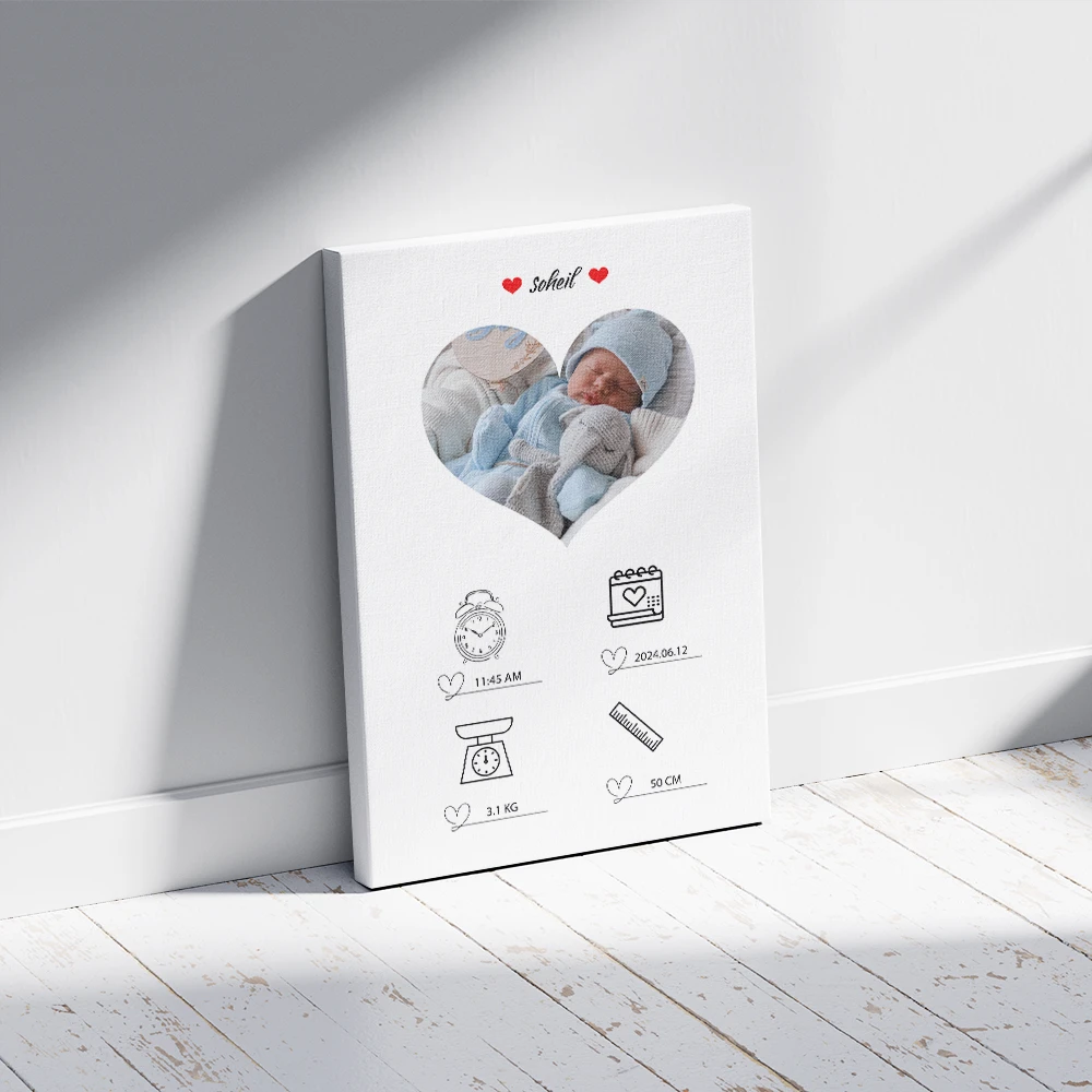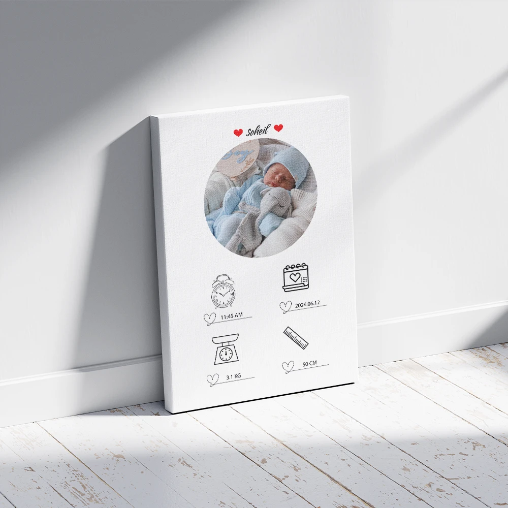 تابلو سفارشی نوزاد با طرح قلبی و دایرهای، یکی از احساسیترین و خاصترین انتخابها برای ثبت لحظات آغازین زندگی فرزند شماست. این تابلو با طراحی مینیمال و لطیف، امکان نمایش عکس نوزاد بهصورت قلبی یا دایرهای را فراهم میکند و در کنار آن، اطلاعات مهم تولد مانند نام نوزاد، تاریخ تولد، ساعت تولد، وزن و قد درج میشود؛ جزئیاتی که هر بار نگاهکردن به آنها، خاطرات شیرین روزهای اول را زنده میکند.