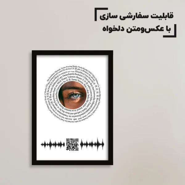 تابلو موزیکال طرح دوستت دارم به صد زبان یک هدیه خاص، عاشقانه و مدرن است که احساسات شما را به شکلی تازه و ماندگار بیان می‌کند. این تابلو با طراحی دایره‌ای منحصر‌به‌فرد که عبارت “دوستت دارم” را به صد زبان دنیا در بر گرفته، جلوه‌ای چشم‌نواز و پر‌مفهوم دارد. در بخش پایین تابلو، یک کد QR اختصاصی طراحی شده که با اسکن آن می‌توانید صدای ضبط‌شده یا آهنگ موردعلاقه‌تان را پخش کنید. این تابلو قابل سفارشی‌سازی با عکس، متن و صدای دلخواه شما است و با کیفیت چاپ بالا، قاب مشکی و سفید شیک و طراحی مینیمال، می‌تواند انتخابی بی‌نقص برای هدیه به عشق، سالگرد ازدواج، ولنتاین یا حتی دکور شخصی باشد.