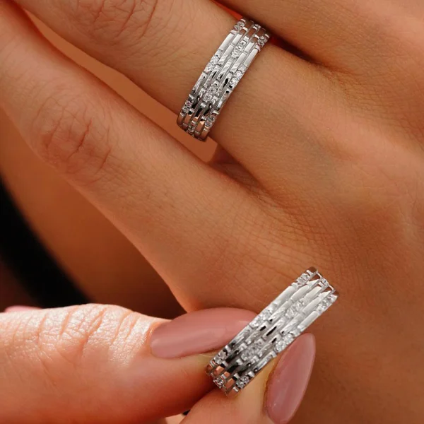 در دنیایی که زیبایی در جزئیات نهفته است، حلقه ست نقرهی ما با طراحی برجستهاش درخشش شما را در هر موقعیتی برجسته میکند. این ست خاص، نماد پیوند بین ظرافت و استحکام است؛ هر حلقه با دقت و عشقی بینظیر ساخته شده تا قدمی دیگر به سوی ابدیت باشد. با حلقه ست ما، سفر زیبایی خود را آغاز کنید و داستانی جاودانه بسازید.