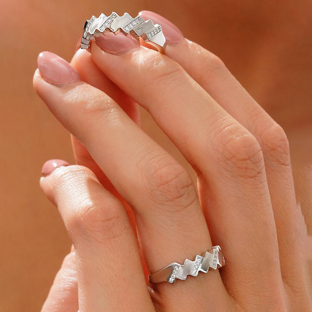 در جهانی پر از طرح‌های تکراری، حلقه نقره‌ای زاویه‌دار، نمادی از جسارت و نوآوری است. این حلقه با طراحی منحصر به فرد، همانند استایل خاص شما می‌درخشد و توجه هر فردی را به خود جلب می‌کند. در مهمانی، یک نگاه به دستان شما کافی‌ است تا طنین خاص این طراحی مبتکرانه، گفت‌وگوها را نو کند. با استفاده از این حلقه، نه تنها جواهری زیبا دارید، درخشندگی سنگ‌های زینتی، همراهی استثنایی برای جلوه بی‌بدیل نفیسی‌است که در دستان شما قرار دارد.