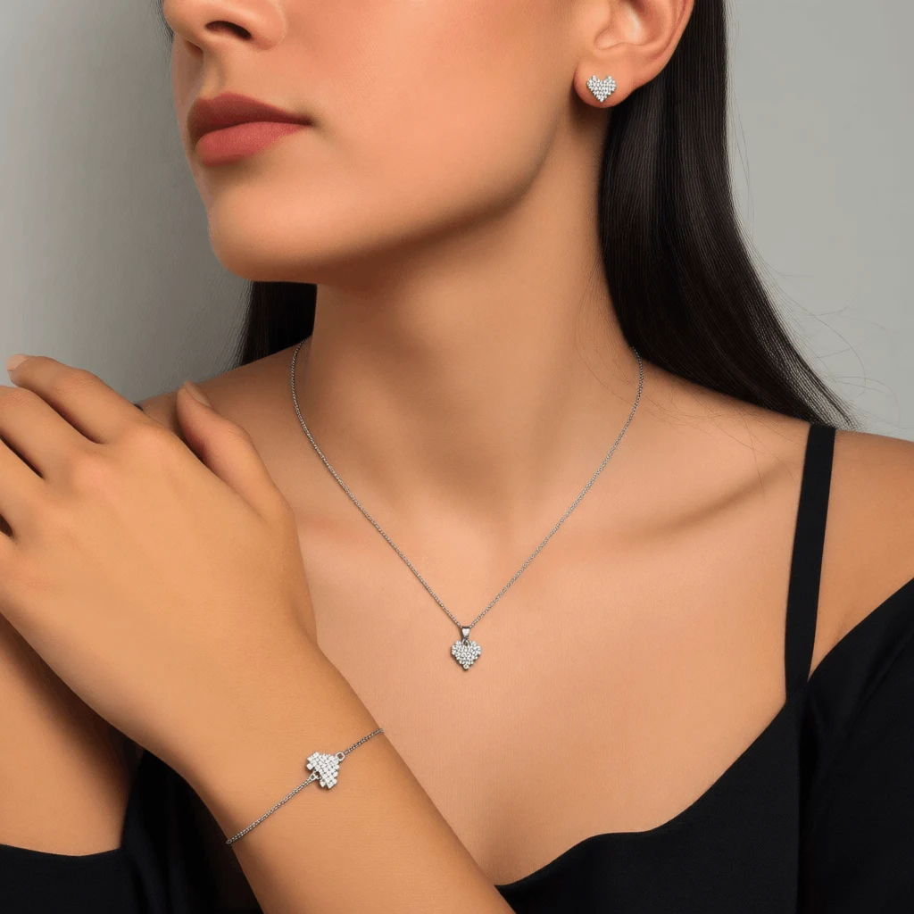 خرید سرویس نقره دخترانه مدل قلب پیکسلی | ضمانت اصالت