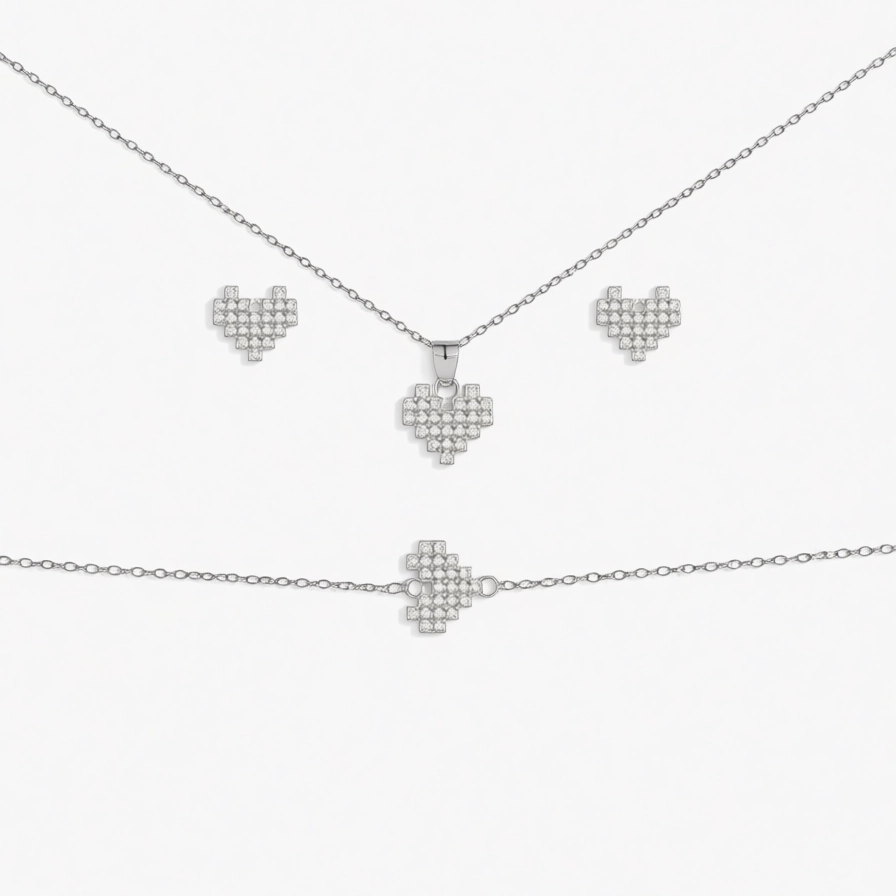 سرویس نقره دخترانه مدل قلب پیکسلی