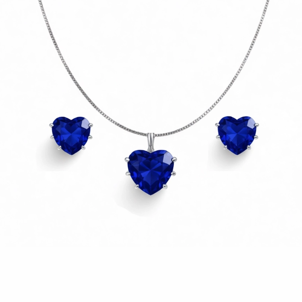 نیم ست نقره اصل 925 مدل قلب با سنگ یاقوت آبی