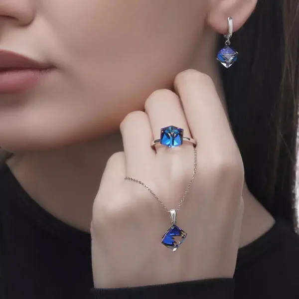نیم ست نقره زنانه سواروسکی مکعب آبی