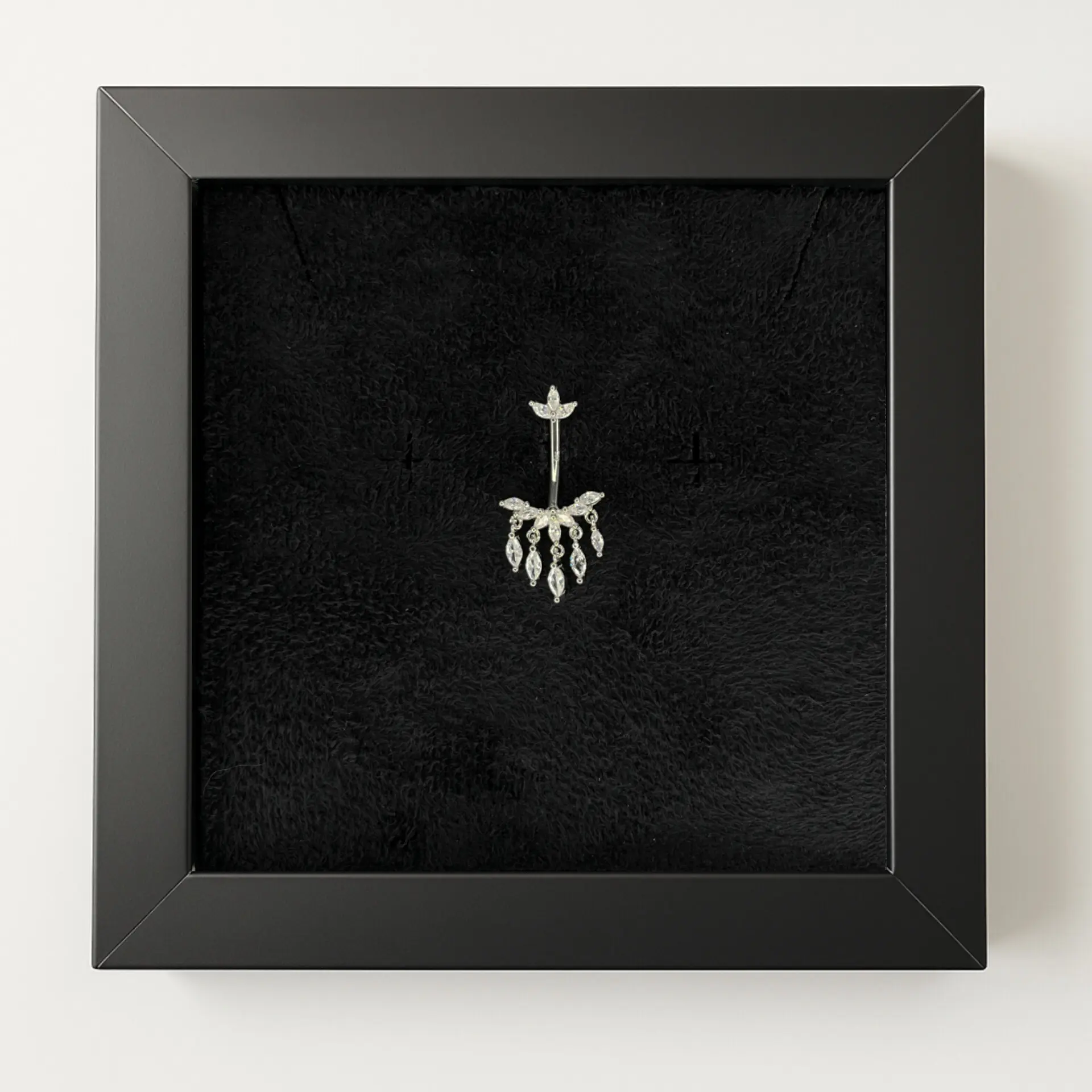 پرسینگ نقره ناف آویزدار با نگین اشک