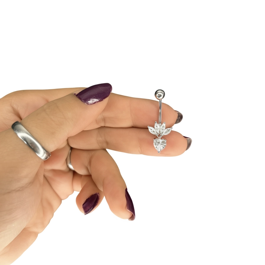 پرسینگ نقره ناف آویز نگیندار طرح قلب|پیرسینگ نقره 925 اصل ایتالیایی