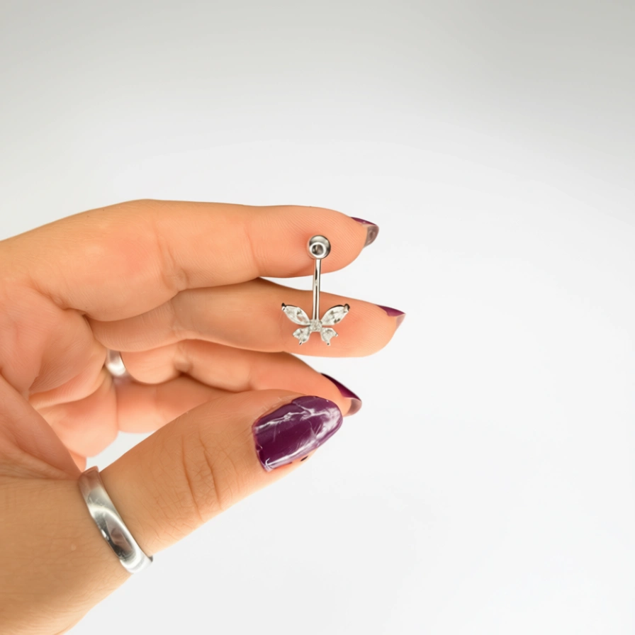پرسینگ نقره ناف شاپرک مدل نگین دار|پیرسینگ نقره ناف خاص