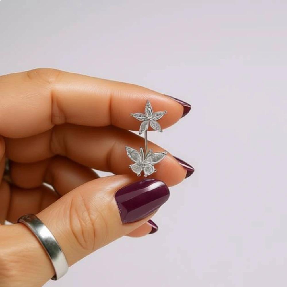 خرید پیرسینگ نقره ناف مدل گل و پروانه