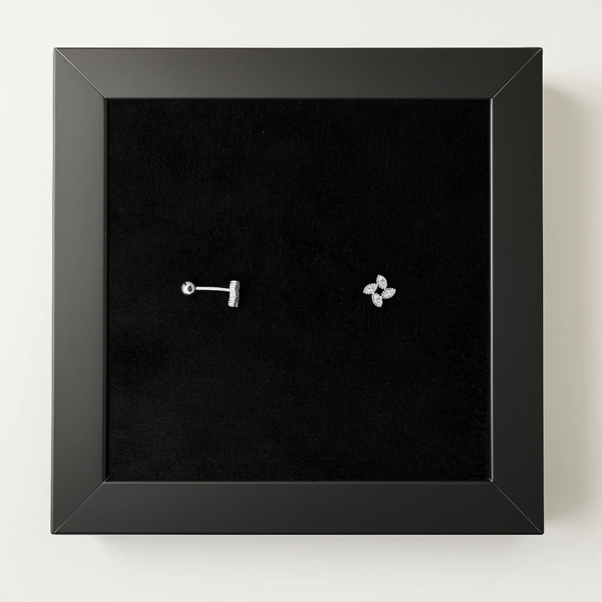 پیرسینگ نقره گوش مدل چهاربرگ نگین دار (جفت)