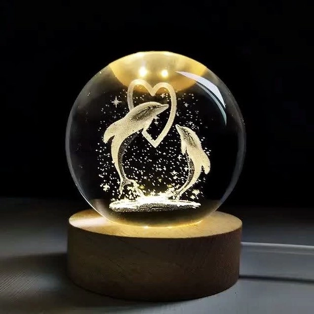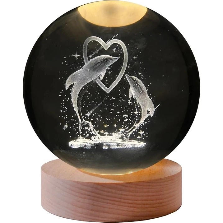 چراغ خواب رومیزی گوی کریستالی طرح دلفین و قلب
