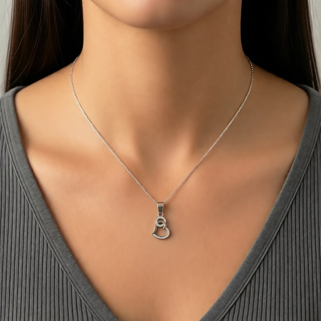 قیمت گردنبند نقره دخترانه حلقه و قلب