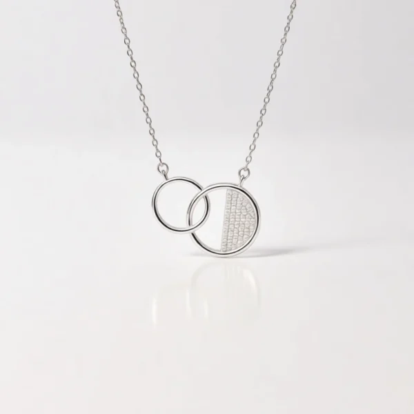 گردنبند نقره 925 اصل زنانه مدل حلقه مینیمال نگیندار، انتخابی ظریف و شیک برای بانوانی است که به استایل ساده اما ماندگار علاقه دارند. طراحی دو حلقه بههمپیوسته در این گردنبند، نمادی از پیوند، عشق و هماهنگی است و در کنار آبکاری براق نقره استرلینگ 925، جلوهای لوکس و چشمنواز ایجاد میکند. این گردنبند نقره زنانه با طراحی مینیمال، بهراحتی با انواع استایل روزمره و رسمی ست میشود و گزینهای عالی برای استفاده روزانه یا هدیهای خاص و ارزشمند از فروشگاه یادگار به شمار میرود.