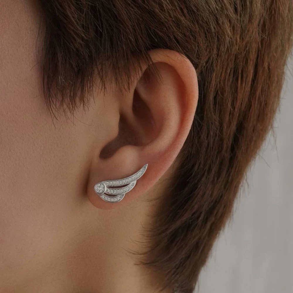 خرید گوشواره نقره 925 عیار اصل مدل ایرکاف بال نگین‌دار